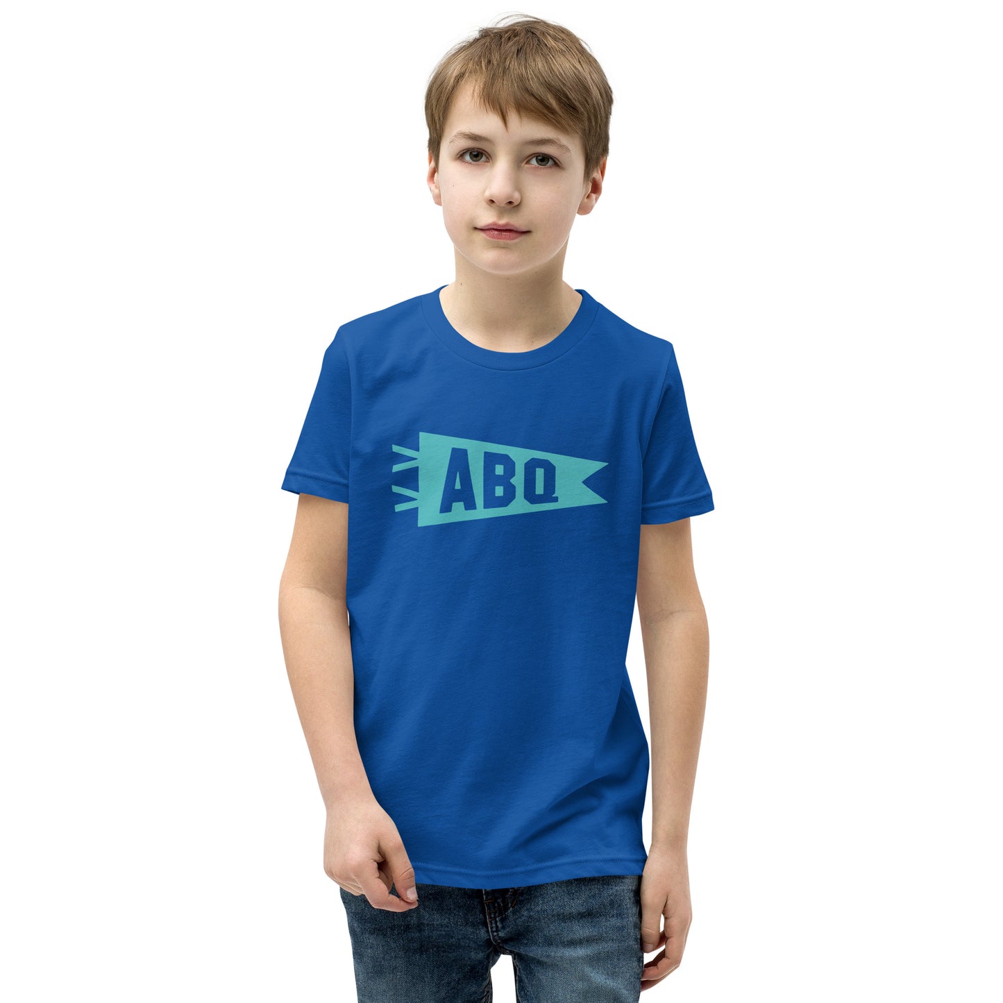 Equip your young adventurer with this kid's t-shirt featuring Albuquerque, New Mexico's ABQ airport code in a vibrant minimalist banner design. Printed in sleek Viking blue, this tee is more than just apparel—it's a symbol of local pride, community spirit, and a burgeoning passion for travel.
