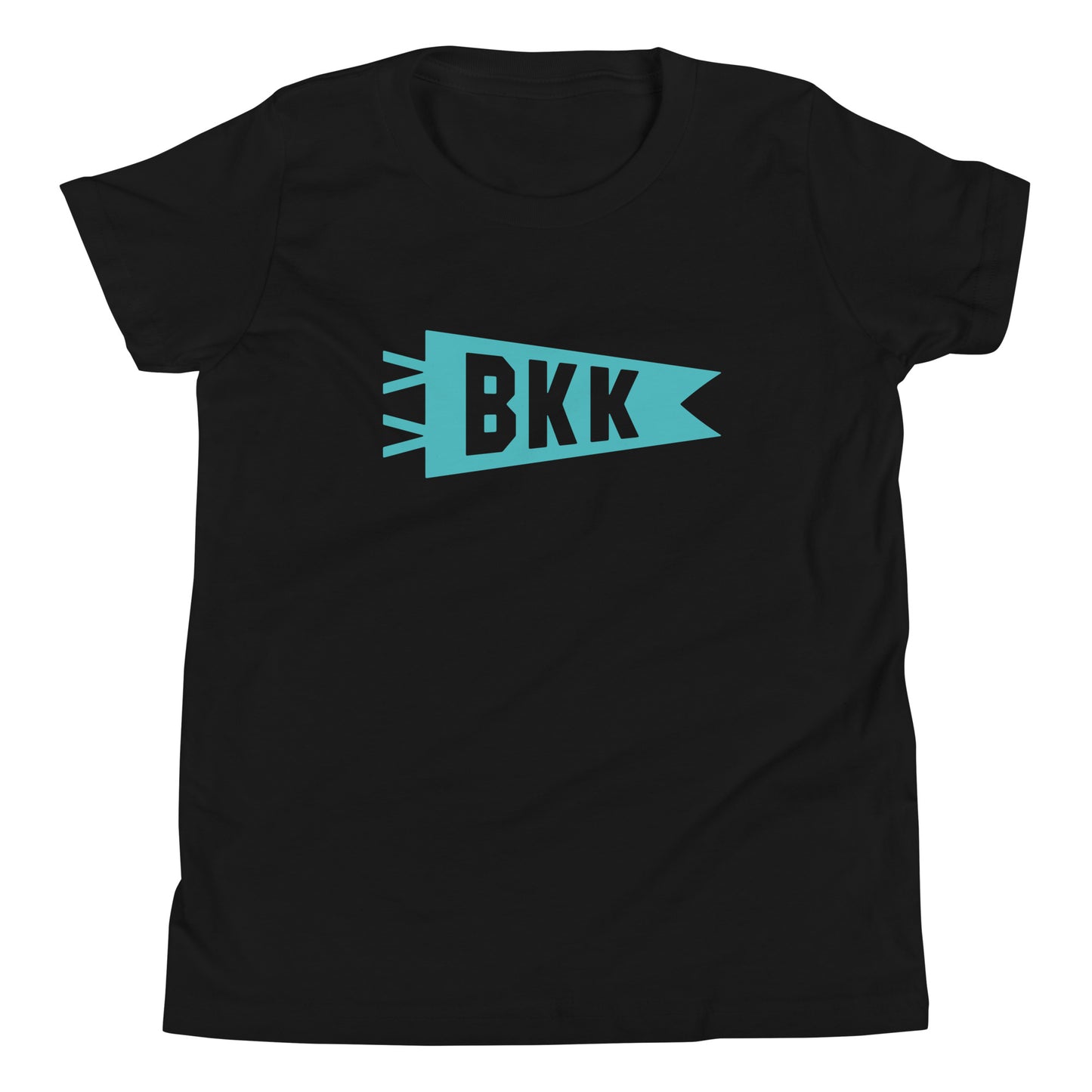 Equip your young adventurer with this kid's t-shirt featuring Bangkok, Thailand's BKK (Suvarnabhumi) airport code in a vibrant minimalist banner design. Printed in sleek Viking blue, this tee is more than just apparel—it's a symbol of local pride, community spirit, and a burgeoning passion for travel.