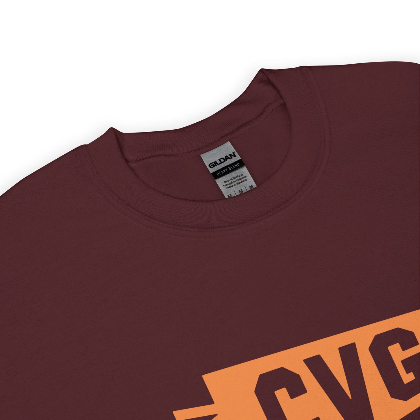 Elevate your style quotient with our unisex sweatshirt featuring Cincinnati, Ohio's CVG airport code in a minimalist banner design printed in vivid orange. Proudly represent your hometown or beloved city as you explore the urban landscape.