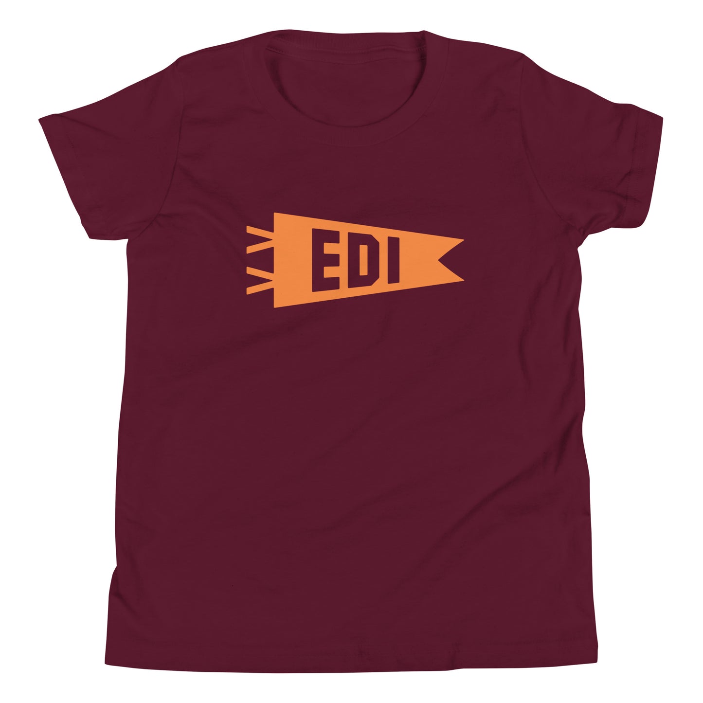 Equip your young adventurer with this kid's t-shirt featuring Edinburgh, Scotland's EDI airport code in a vibrant minimalist banner design. Printed in vivid orange, this tee is more than just apparel—it's a symbol of local pride, community spirit, and a burgeoning passion for travel.