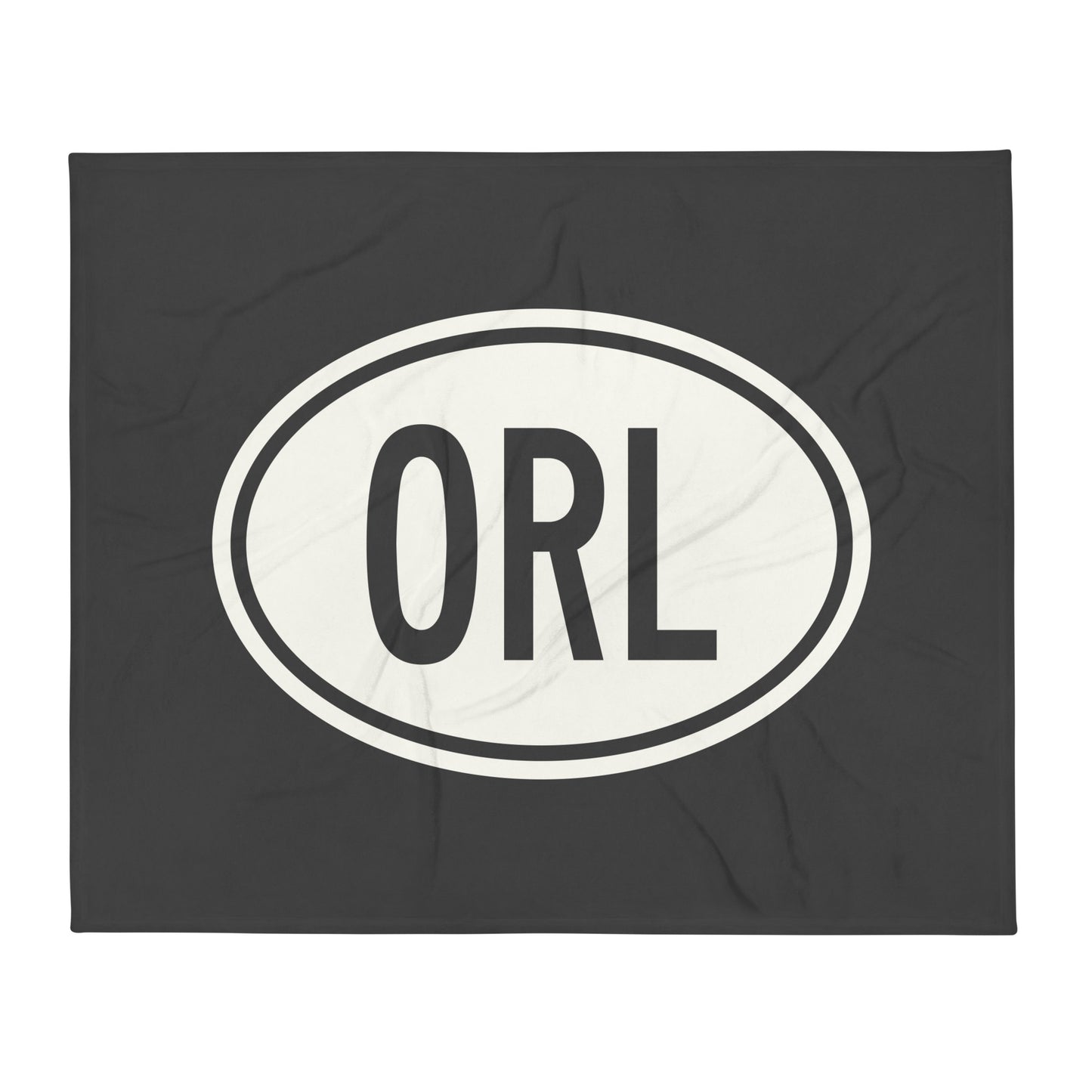 Elevate your home decor and cozy up in style with this chic throw blanket featuring Orlando, Florida's ORL (Executive) airport code in a vintage oval car sticker design. Against an elegant eclipse grey background, the white graphic adds a touch of travel culture to your living space. The front side showcases the iconic oval car sticker, while the reverse is a clean white, offering versatility and sophistication.