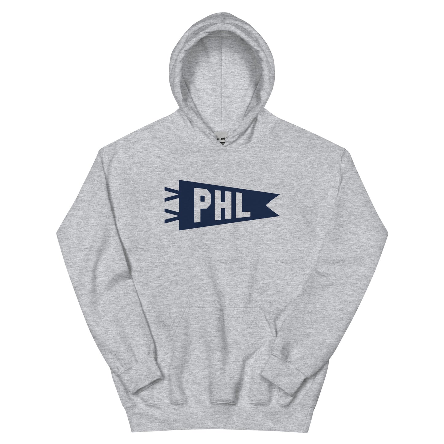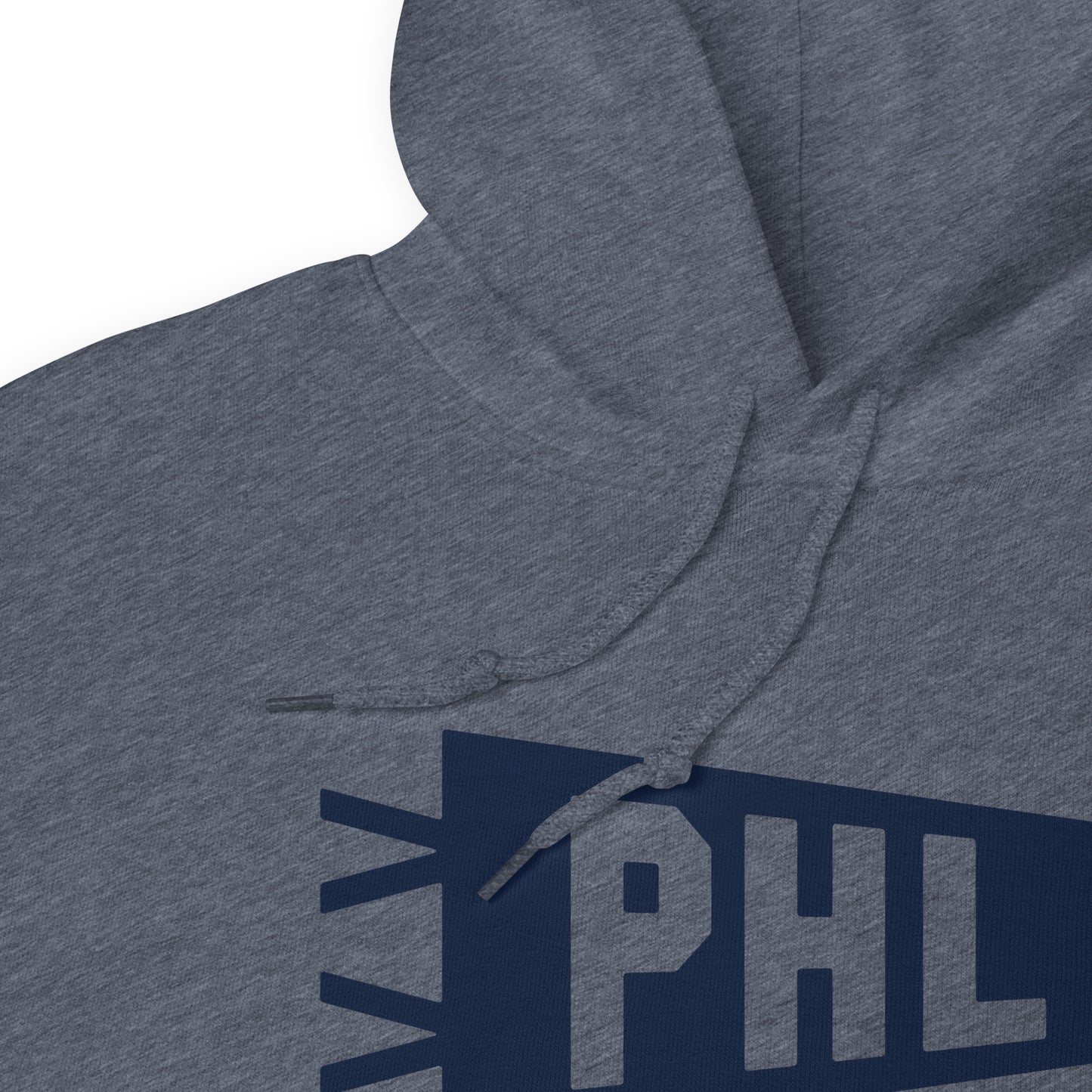 Embrace the perfect blend of comfort and pride with our unisex hoodie featuring Philadelphia, Pennsylvania's PHL airport code in a minimalist banner design printed in refined navy blue. Proudly represent your hometown or beloved city as you explore the urban landscape.