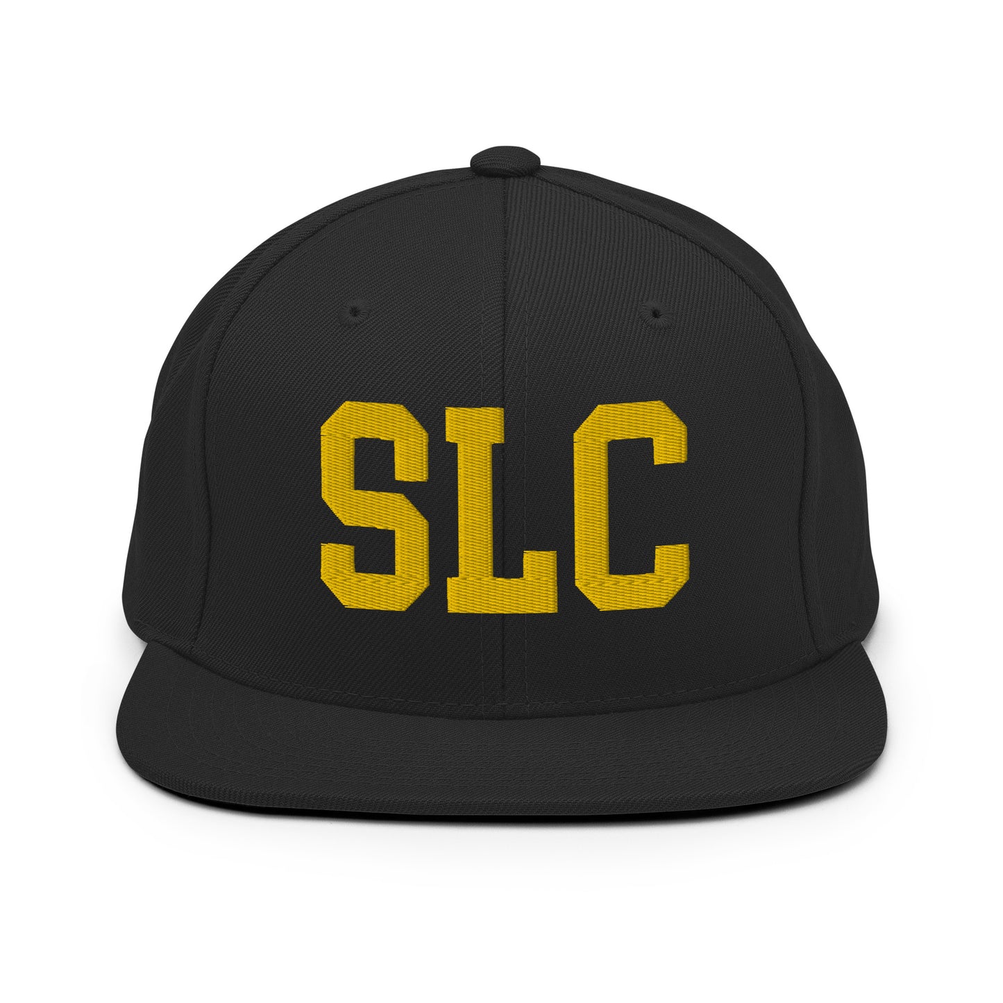 Elevate your streetwear with our snapback hat featuring Salt Lake City, Utah's SLC airport code, boldly embroidered in vintage college-style lettering. This throwback varsity-inspired design adds a timeless edge to any outfit, with embroidery in gold perfectly complementing the hat's various colours. The structured build, flat brim, and full buckram help maintain its classic shape, offering both durability and style.