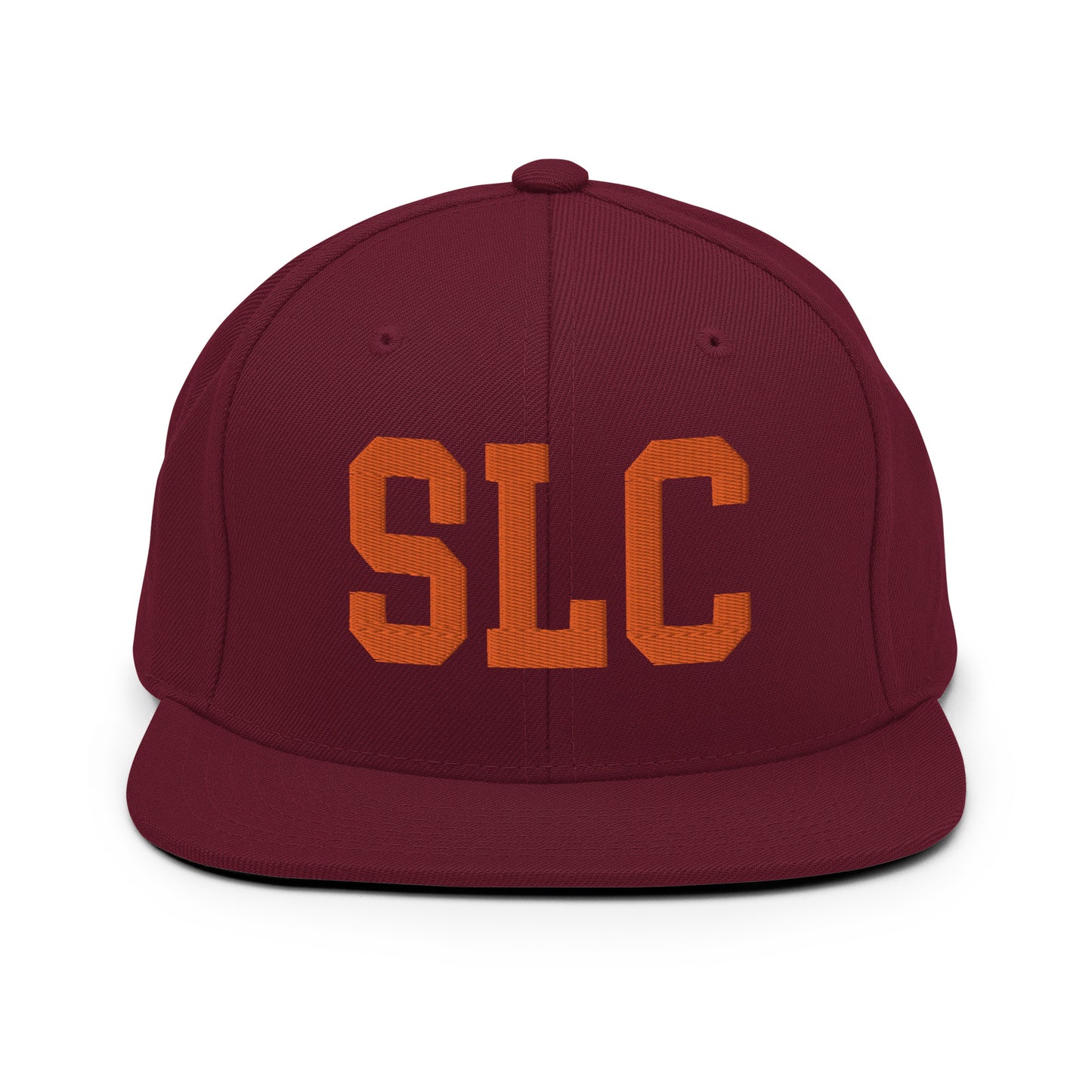 Elevate your streetwear with our snapback hat featuring Salt Lake City, Utah's SLC airport code, boldly embroidered in vintage college-style lettering. This throwback varsity-inspired design adds a timeless edge to any outfit, with embroidery in orange perfectly complementing the hat's various colours. The structured build, flat brim, and full buckram help maintain its classic shape, offering both durability and style.