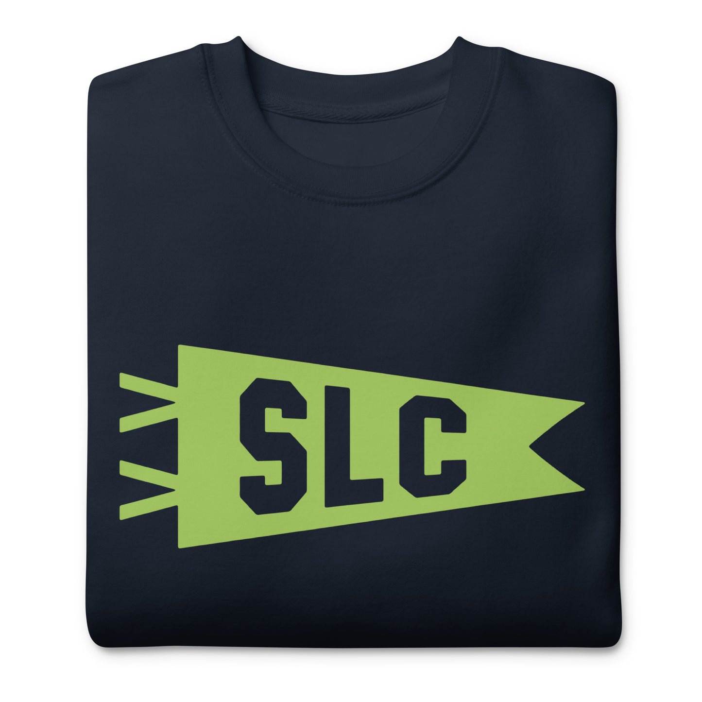 Experience ultimate comfort and express your pride with our premium sweatshirt featuring Salt Lake City, Utah's SLC airport code in a minimalist banner design printed in eye-catching green. Confidently represent your hometown or beloved city as you explore the urban landscape.