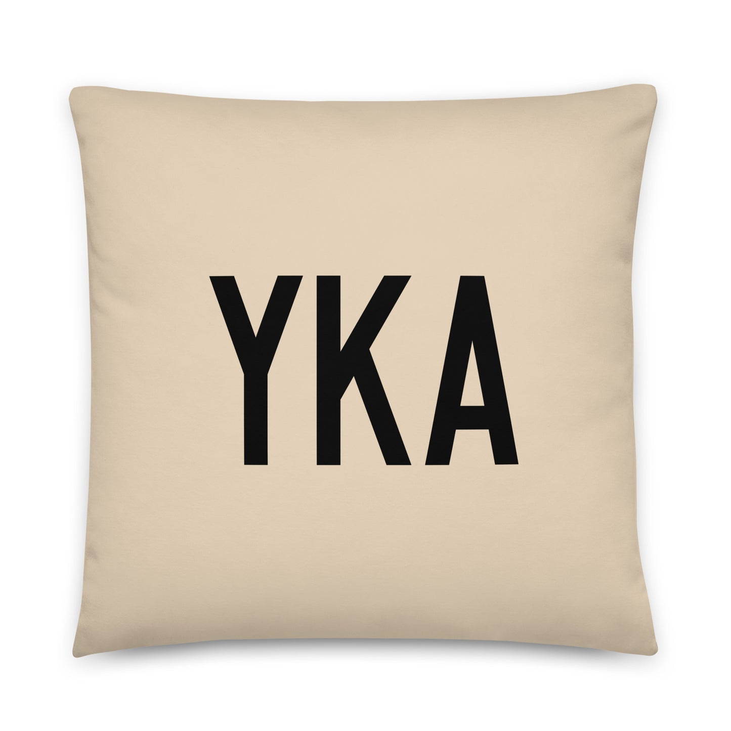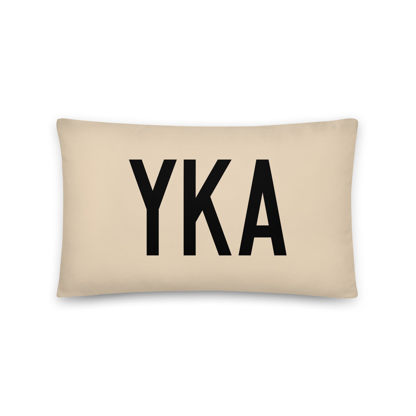 Elevate your living space with our throw pillow featuring Kamloops, British Columbia's YKA airport code, a perfect blend of modern farmhouse charm and city pride. This stylish throw pillow features the airport code printed in bold black letters over a neutral beige background, reminiscent of Air Force aircraft registration numbers. The reverse side showcases a classic buffalo plaid pattern in timeless red and black, adding a touch of warmth and character to your decor.