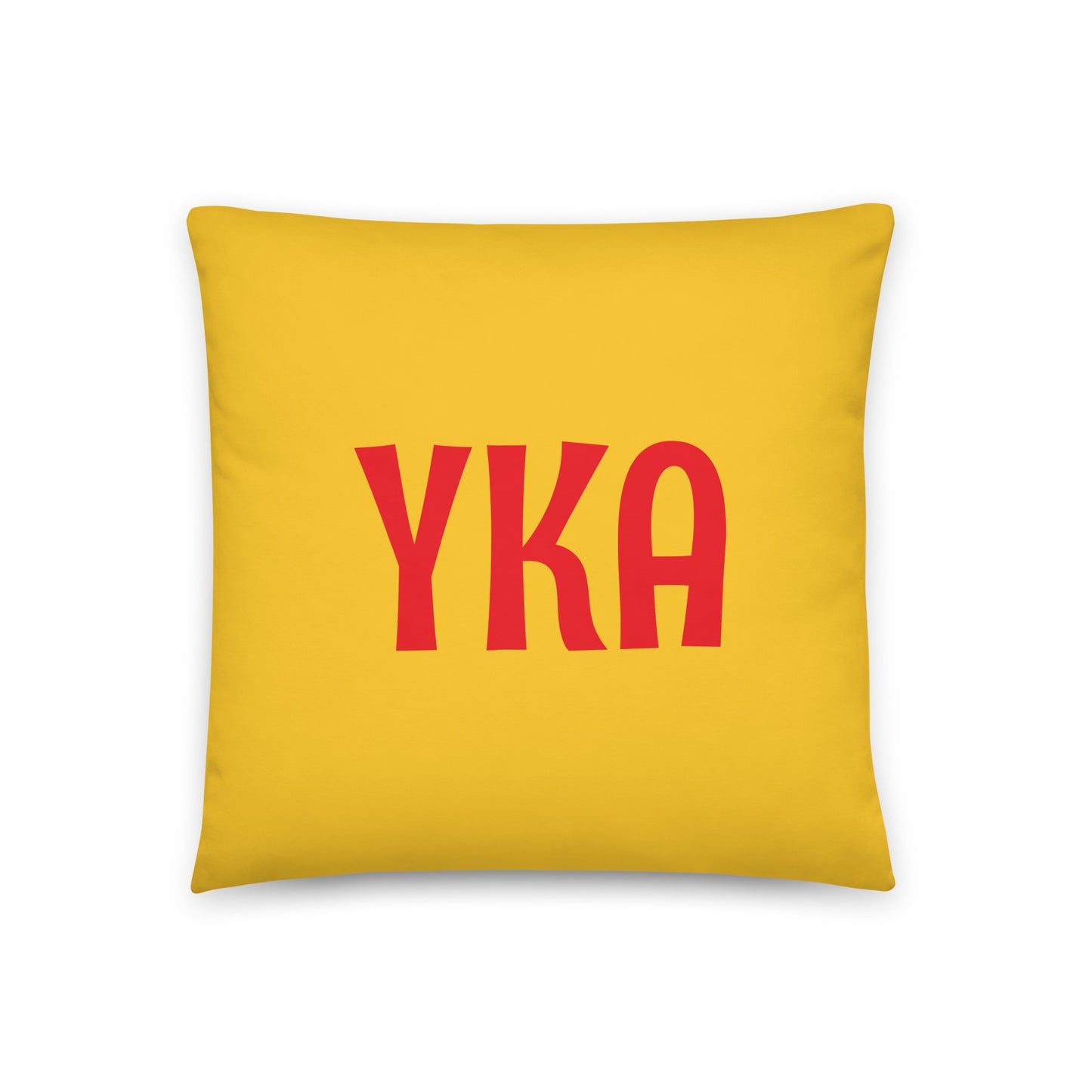 Brighten up your space with a vibrant burst of colour! Our throw pillow featuring Kamloops, British Columbia's YKA airport code in bold red against a lively yellow background is a celebration of local and individual pride. On the reverse side, the pillow showcases the captivating colours of the rainbow in striking horizontal stripes.