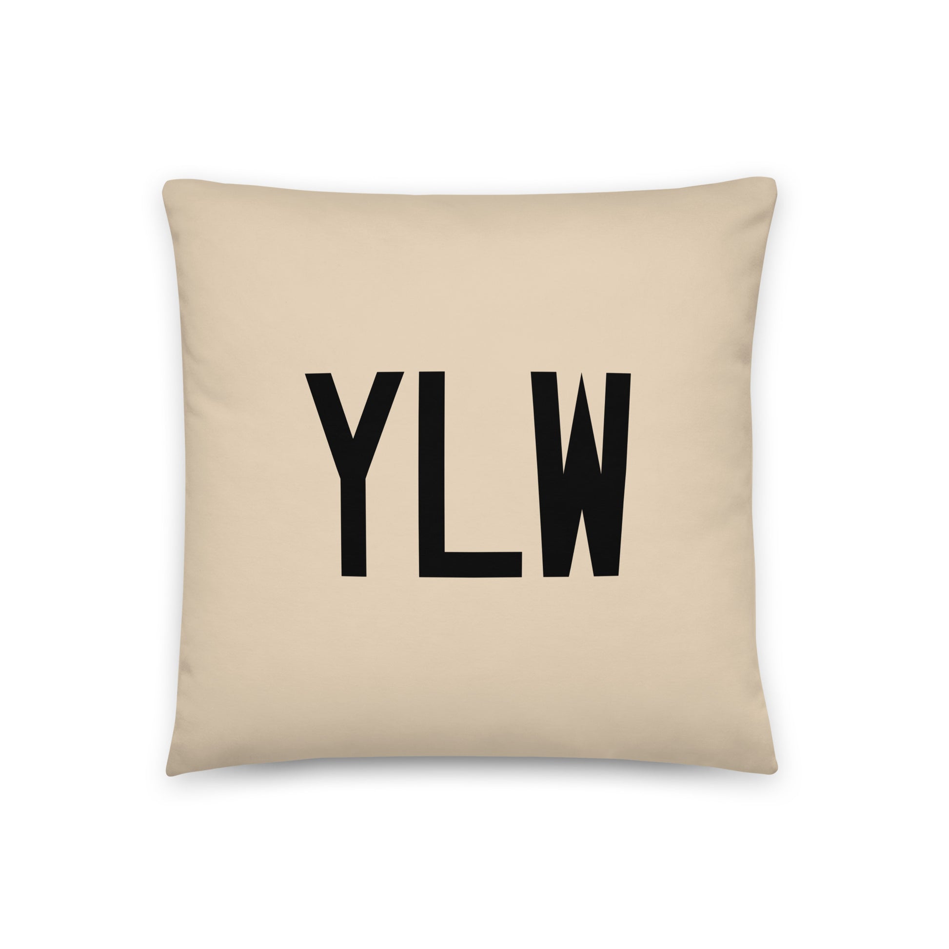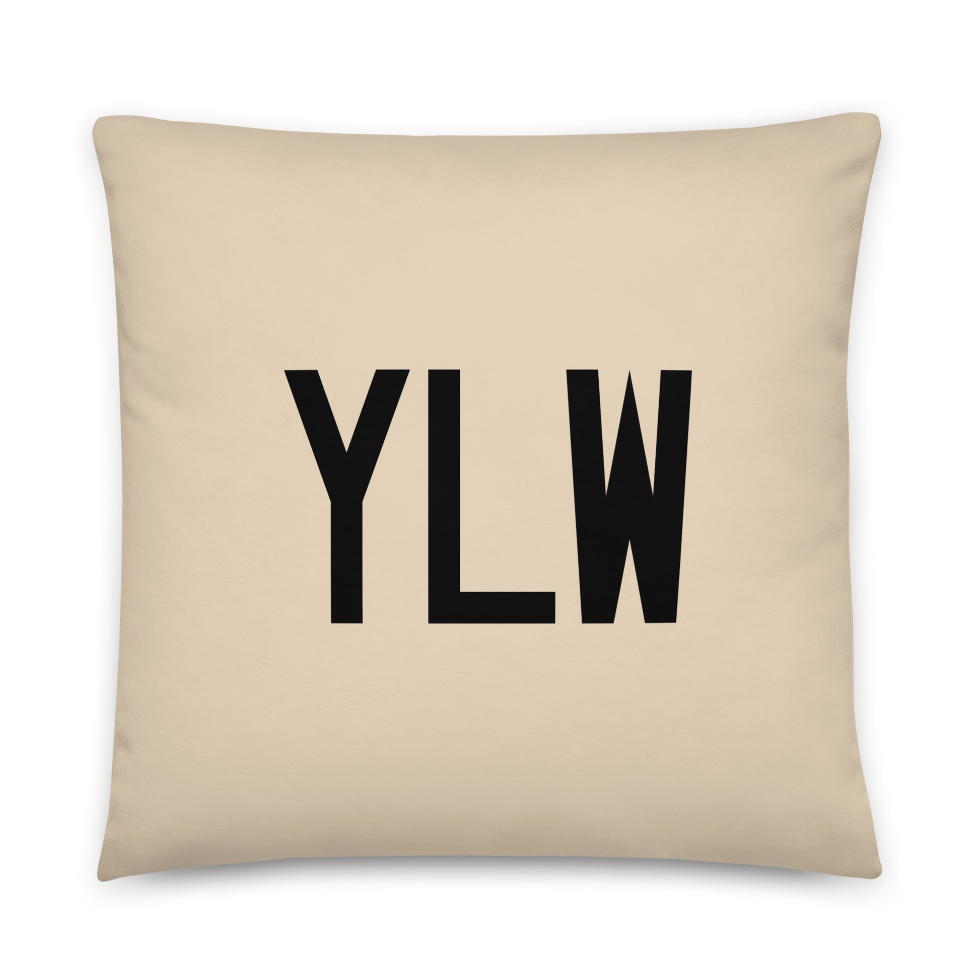 Elevate your living space with our throw pillow featuring Kelowna, British Columbia's YLW airport code, a perfect blend of modern farmhouse charm and city pride. This stylish throw pillow features the airport code printed in bold black letters over a neutral beige background, reminiscent of Air Force aircraft registration numbers. The reverse side showcases a classic buffalo plaid pattern in timeless red and black, adding a touch of warmth and character to your decor.