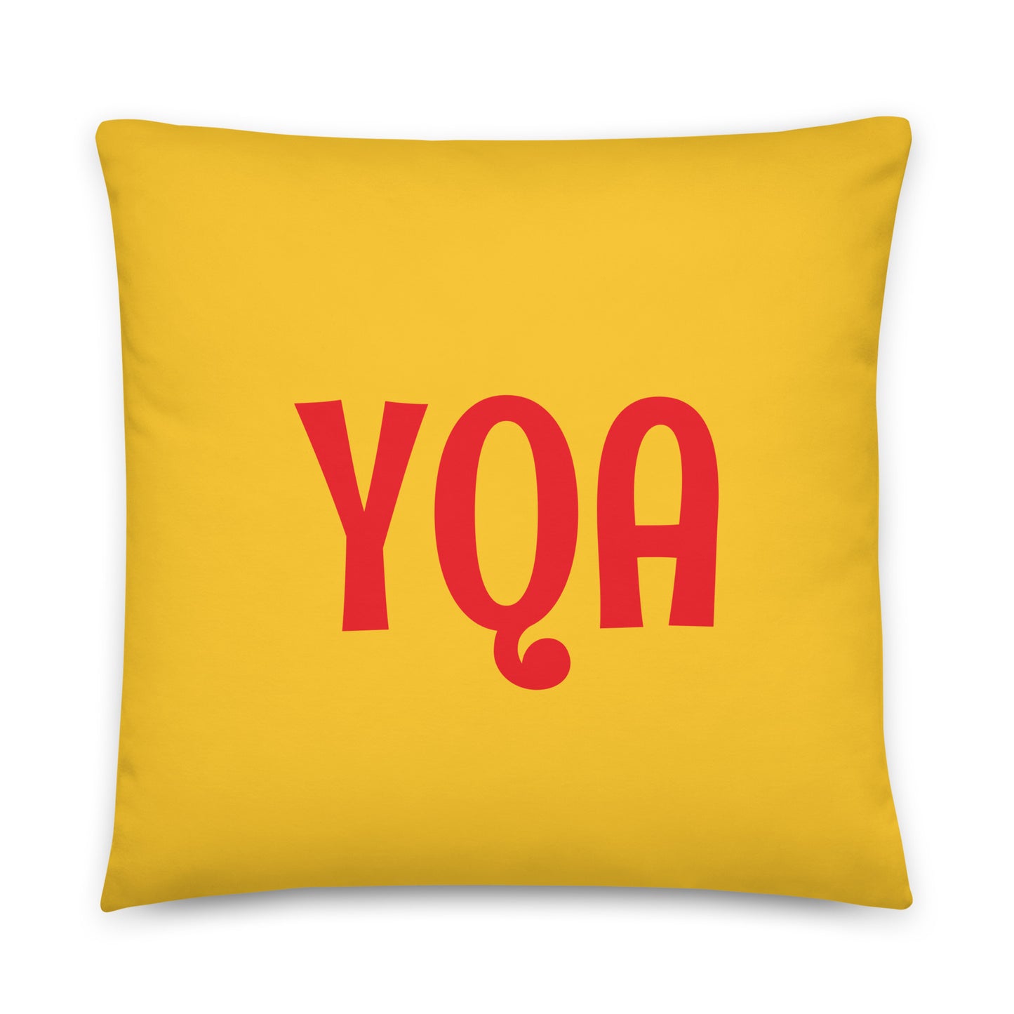 Brighten up your space with a vibrant burst of colour! Our throw pillow featuring Muskoka, Ontario's YQA airport code in bold red against a lively yellow background is a celebration of local and individual pride. On the reverse side, the pillow showcases the captivating colours of the rainbow in striking horizontal stripes.