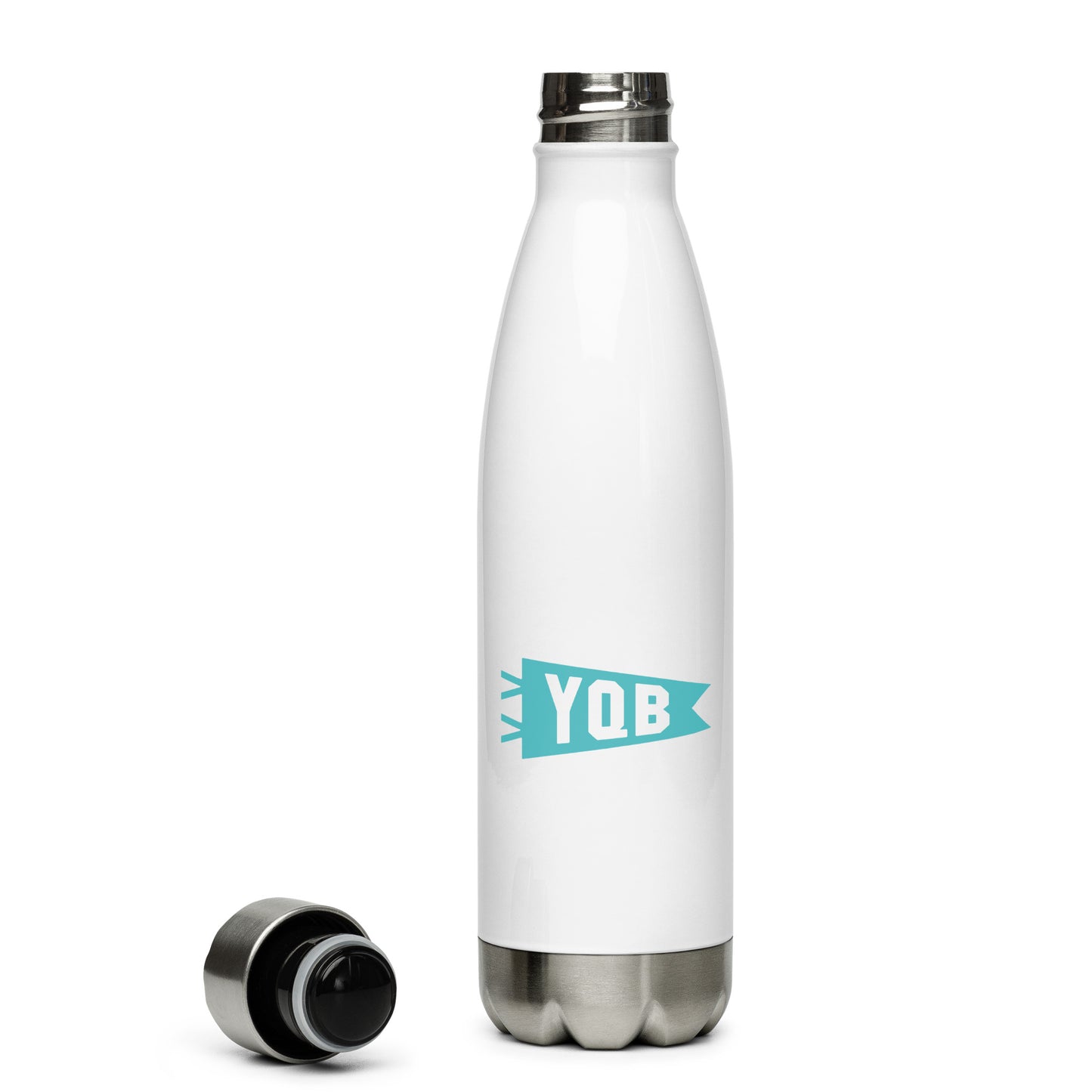 Grab this stainless steel water bottle featuring Quebec City, Quebec's YQB (Jean Lesage) airport code in a sleek Viking blue minimalist banner design, reflecting local pride and community spirit.