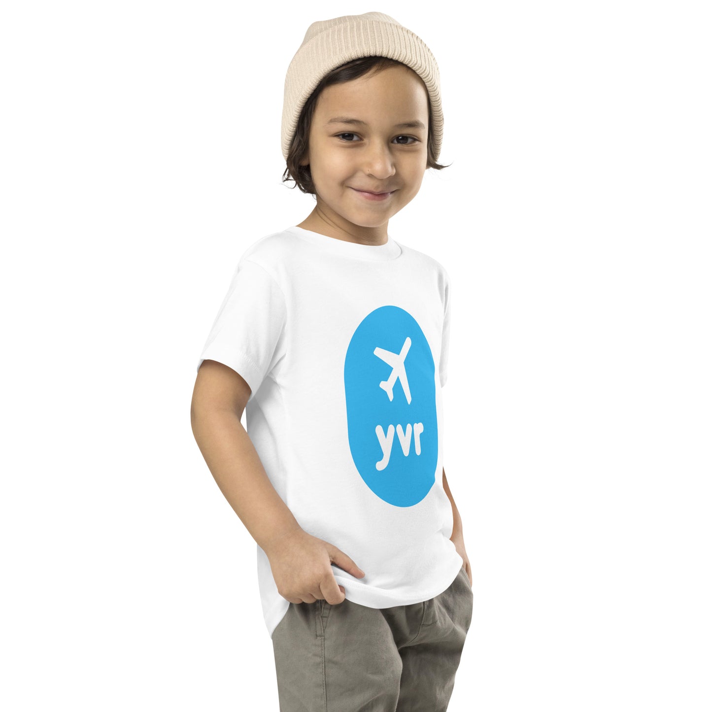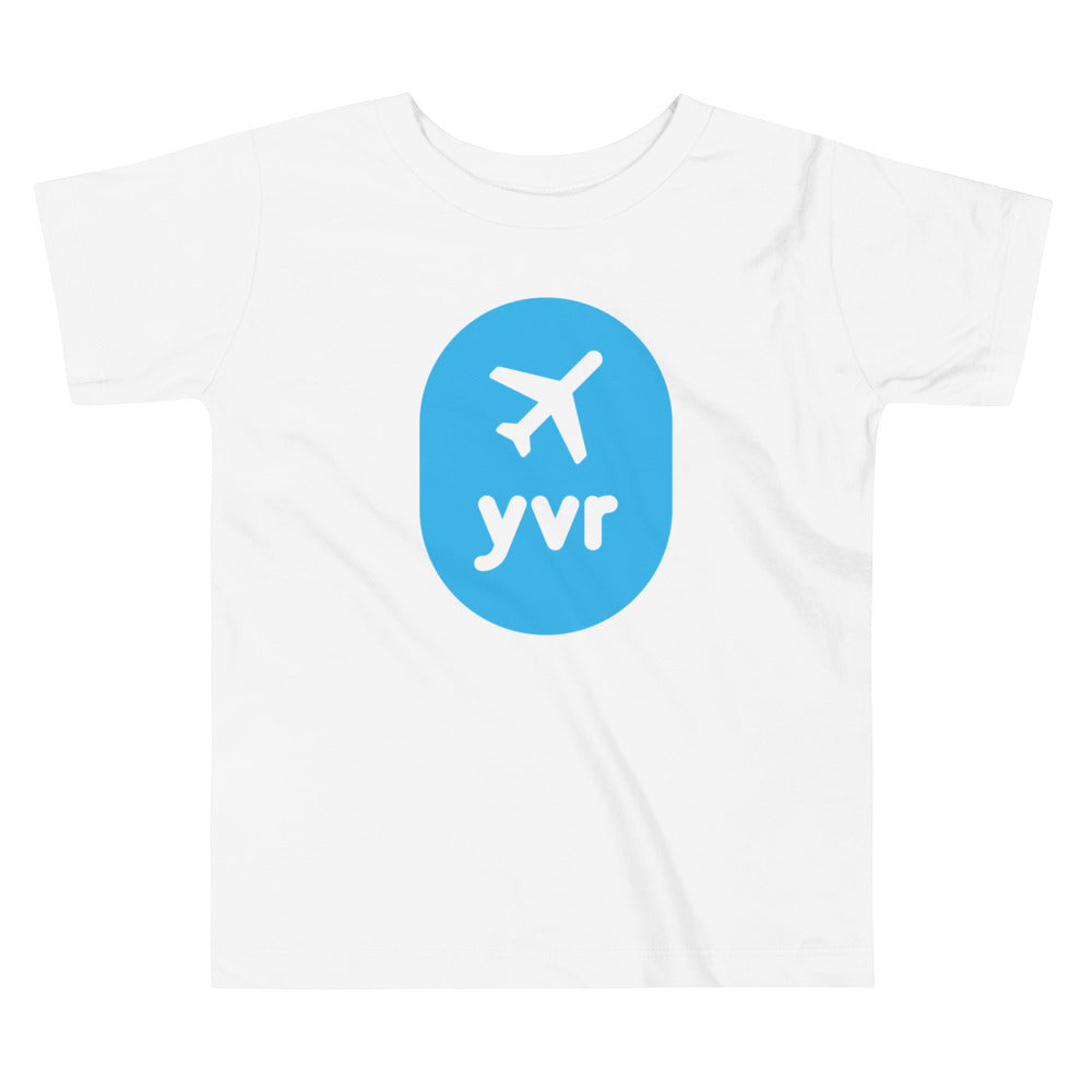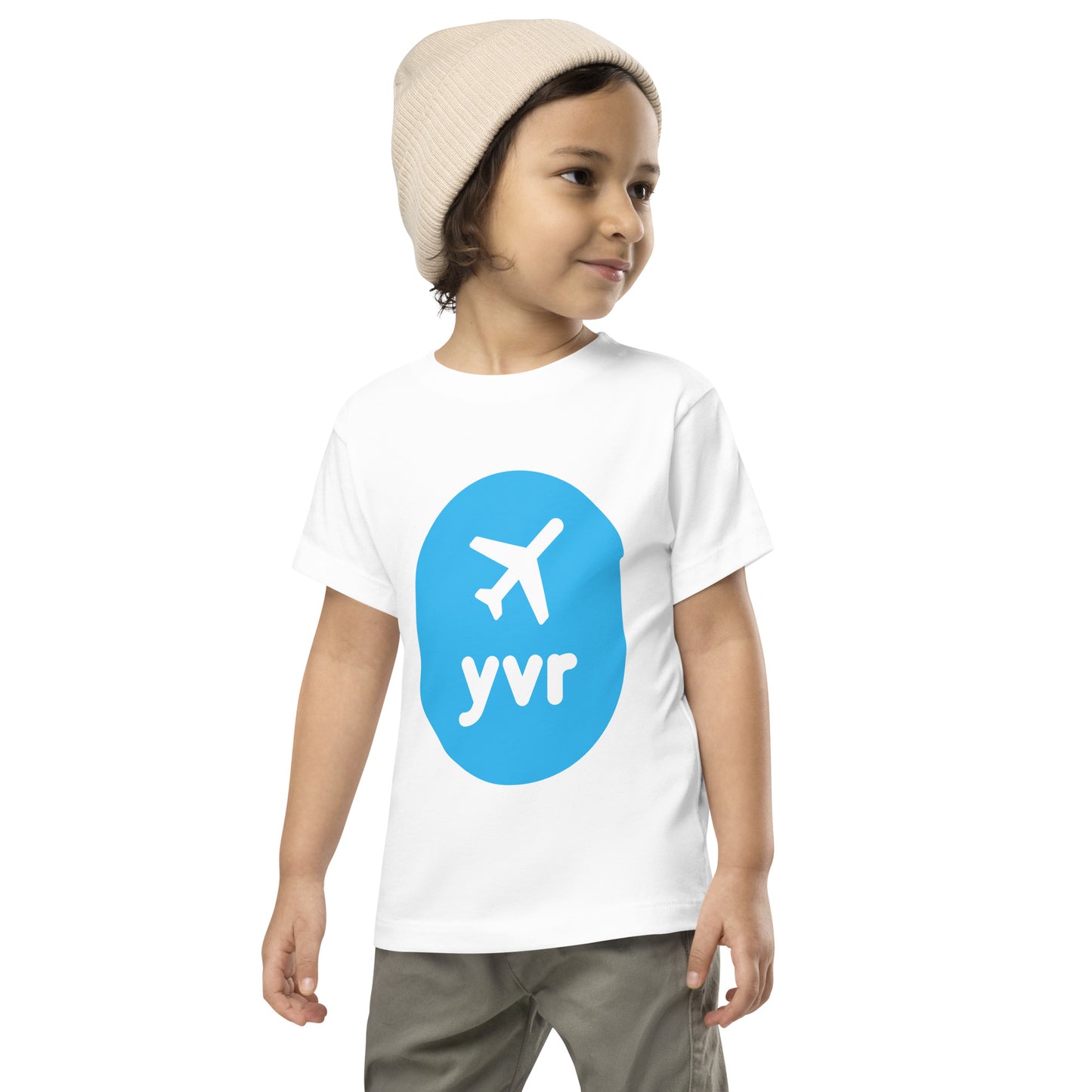 Set your toddler's imagination soaring with our toddler t-shirt featuring Vancouver, British Columbia's YVR airport code. Designed with a charming airplane window motif against a serene blue backdrop, this tee ignites dreams of adventure and exploration.