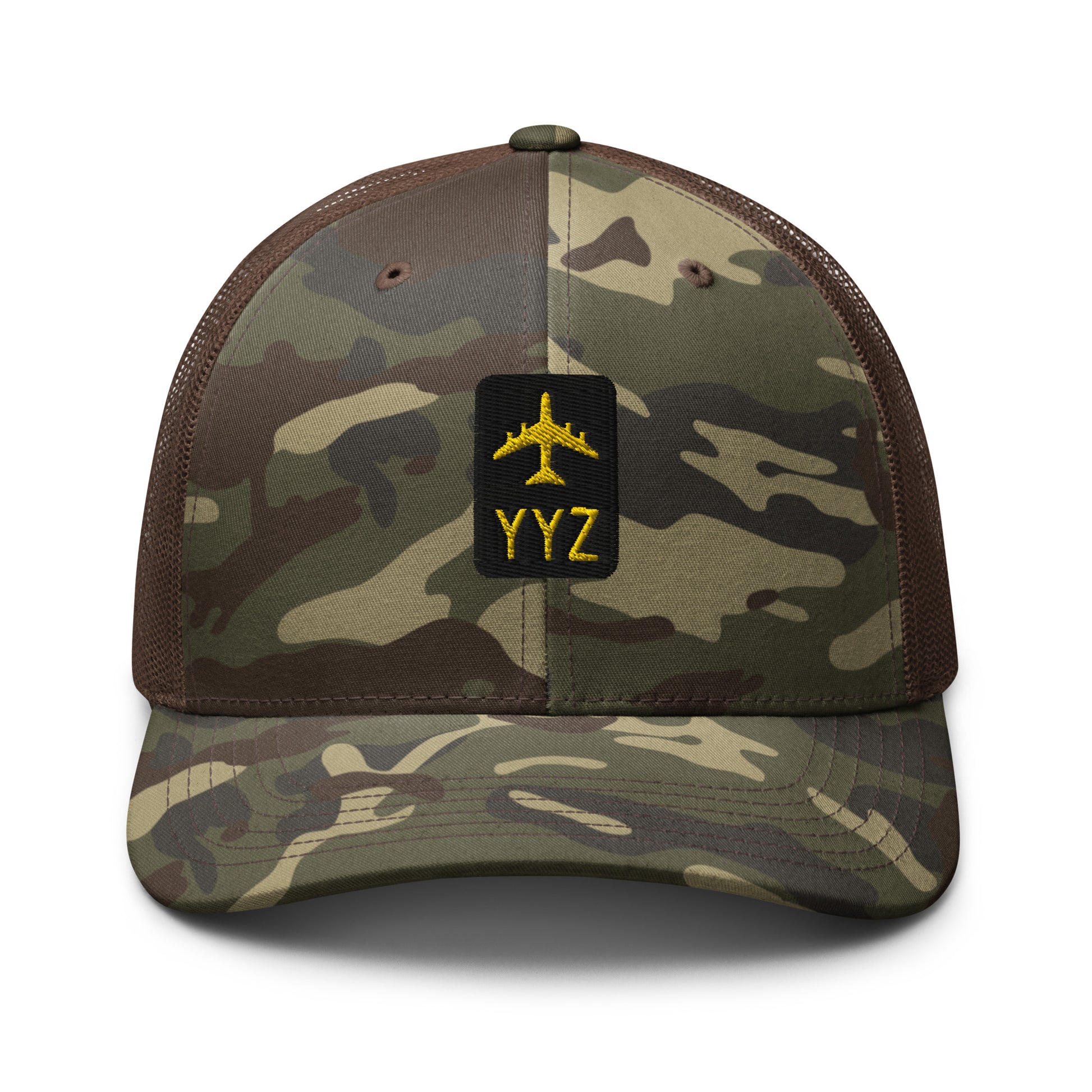 YYZ Toronto Ontario Camouflage Trucker Hat • Black and Gold Embroidery
